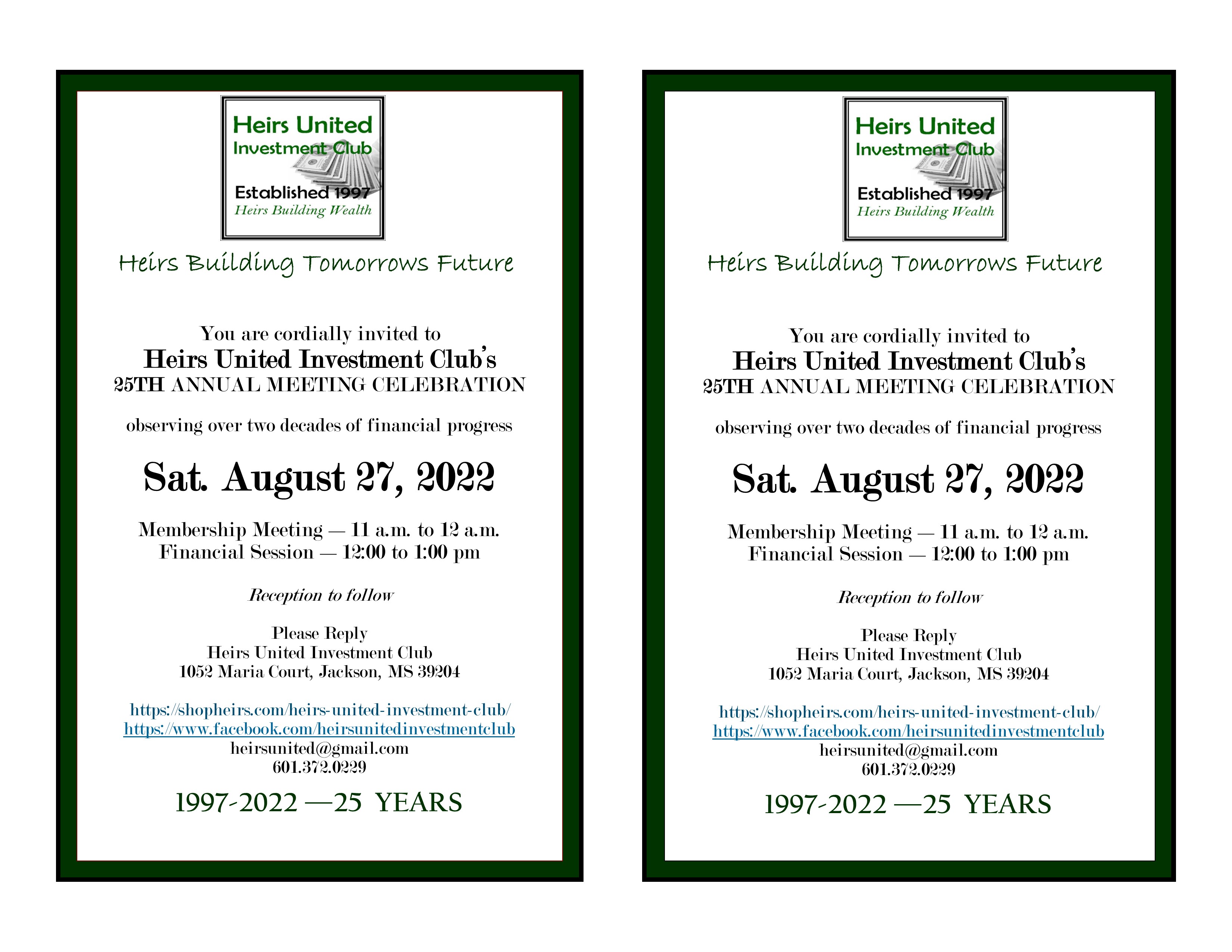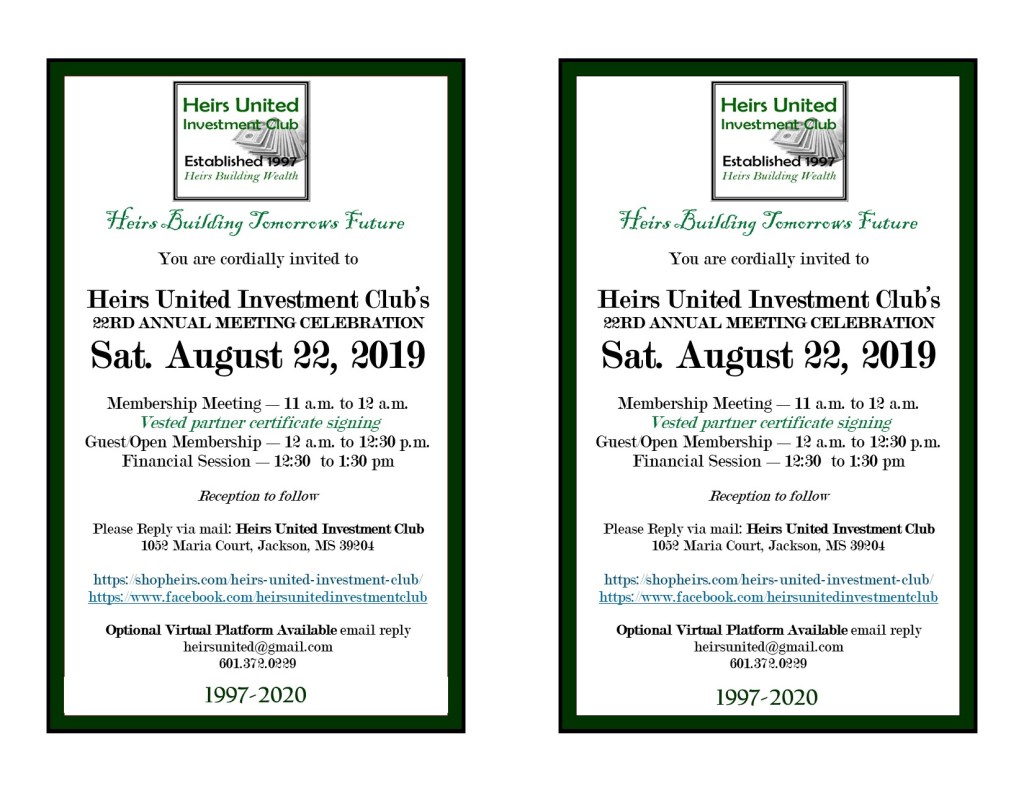 August 2019 marks Heirs United Investment Club’s 22nd year!